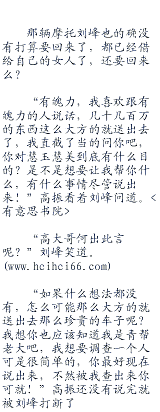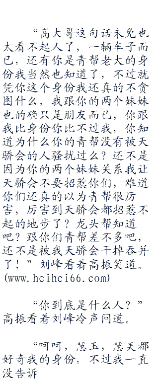 当然了刘峰自己是很想上去坐坐的,说不定还能发生一些有意思的事情呢,不过刘峰想起她们还有一个哥哥高振,就将心里的想法给散去了。