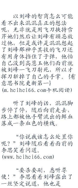 “啊!”混混眼睛闭了起来,向着自己的左手砍去,飞刀很是锋利,混混只感觉一阵疼痛自己的手掌就已经掉了下来。
