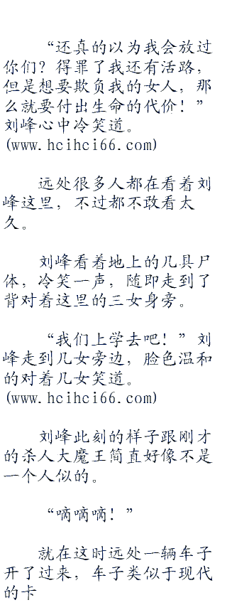 “你的选择没有错,如果你刚刚向着她们冲过去,我敢说,你刚刚踏出脚步就是你毙命时候,你自己用一只手换自己一条命,很不错了,你也记住这一次教训,下次要找准人在欺负,我并不厌恶坏人,因为我自己就是一个坏人,如果你们这一次不是欺负我的女人,那么我根本就是无视你们的,但是怪就怪你们眼睛太瞎,得罪了你们得罪不起的人 !”刘峰看着混混离开的背影笑道。