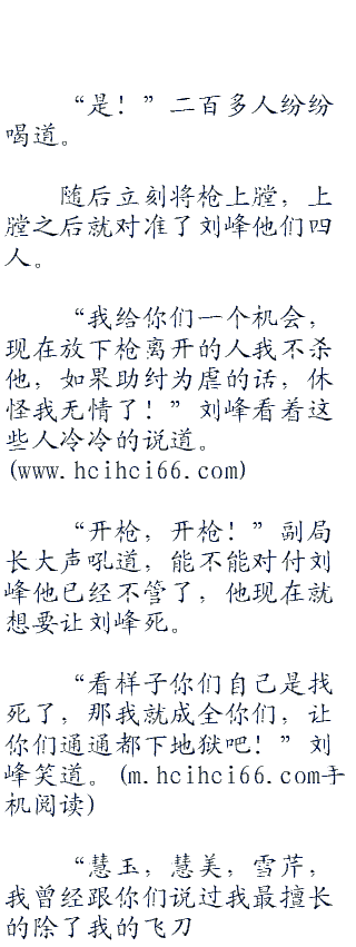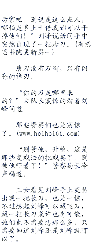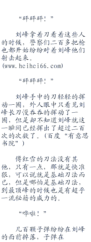 远处站着很多人在看着这一幕,这些人都是围观的群众,杀人打人在这时候很平常,但是却没有出现过像刘峰这么嚣张的,居然直接将这么多的警察给干趴下了。ww w he i.co m