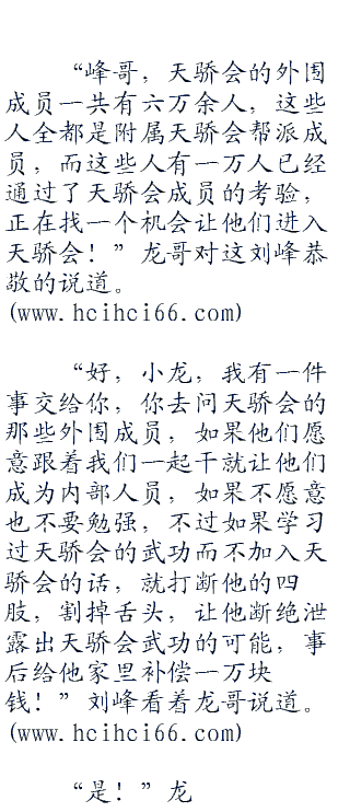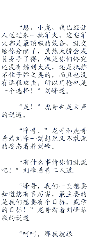 “好,有你们的这句话我很欣慰,今天我在街上一怒之下杀了几百个警察,估计很快就有军队来围剿我了,今天召集你们是想要告诉你们一声,如果现在想要退出天骄会的我决不阻拦,待会就可以离开天骄会!”刘峰看着小弟们说道。