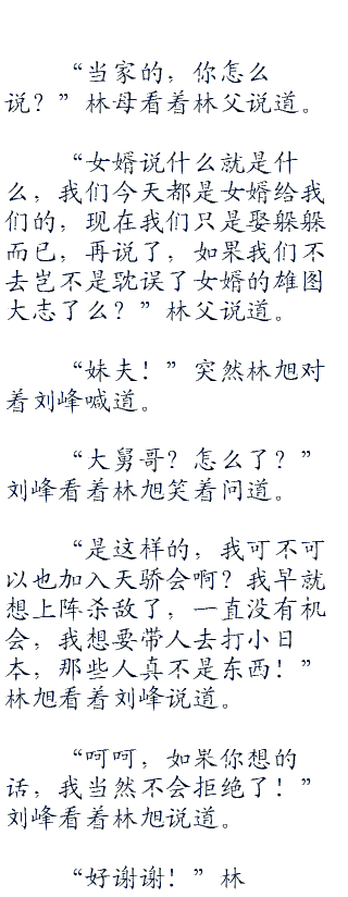 “呵呵,晓晓,不给我介绍一下你哥哥么?”刘峰看着林晓晓问道。