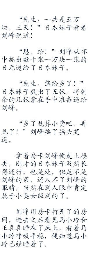 “刘峰哥哥,两万块,够了,不用支票的!”二女懂事的说道。