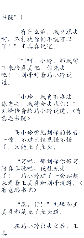 “我也要去,你们都走了,我一个人也不想呆在这里!”王真真听见马小玲和刘峰的谈话,立刻说道。