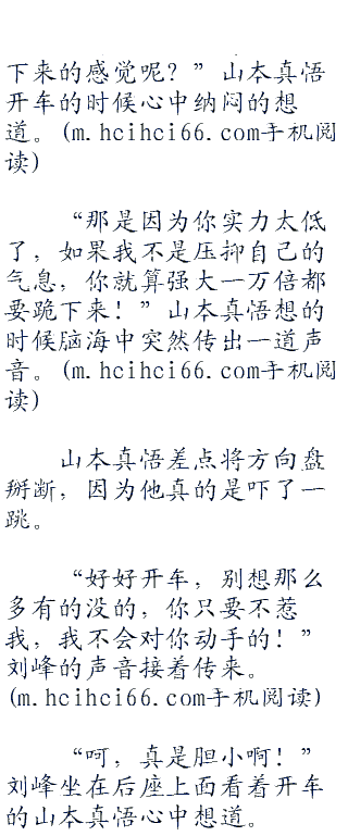 “好!”马小玲拉着刘峰坐上了车子里面,山本真悟额头此刻冒出了冷汗,随后也上了车子,发动了车子开像了山本一夫也就是山本龙一的住所。