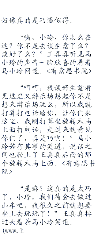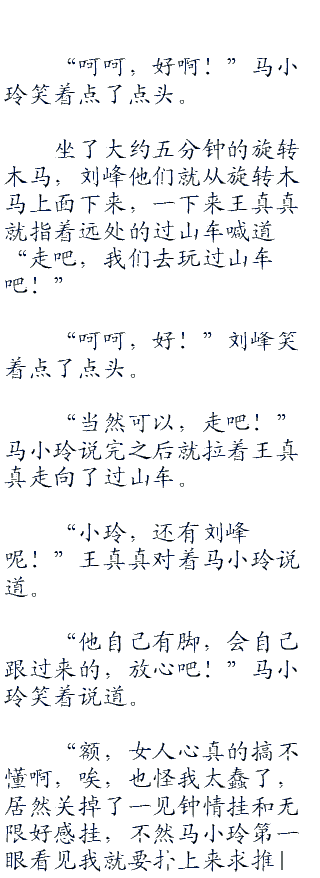 “咦?那个不是你么?”马小玲刚刚出现在游乐场就看见不远处王真真和刘峰在一起坐着旋转木马。