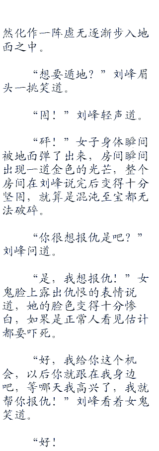 出来的时候刘峰看了一眼女鬼所在房间的画,脸上透露出一丝笑意。