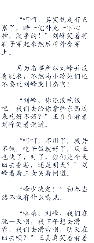 马小玲则是看着刘峰离开的背影心想 “是不是生气了啊?哼,管他呢,生气才好,我才开心呢!”