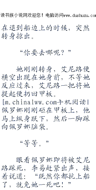 落身在甲板上的艾尼路将吓昏过去的佩罗娜扔在一边,然后朝李易说道:“船长,我回来了…”