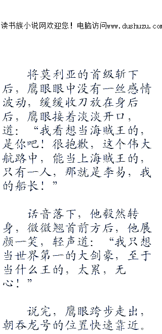 不等莫利亚把话说完,鹰眼突然摇头,淡淡道:“我对成为海贼王不感兴趣,所以,你安息吧!”