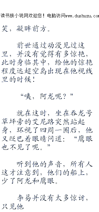 紧随着乙姬王妃船只潜入深海朝鱼人岛进发的吞龙号甲板上,斯摩格看着前方若隐若现的船影,接着面色期待的说道:“深海乐园,真是让人迫不及待呢。”