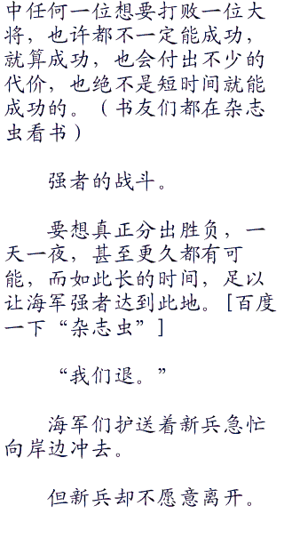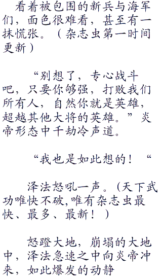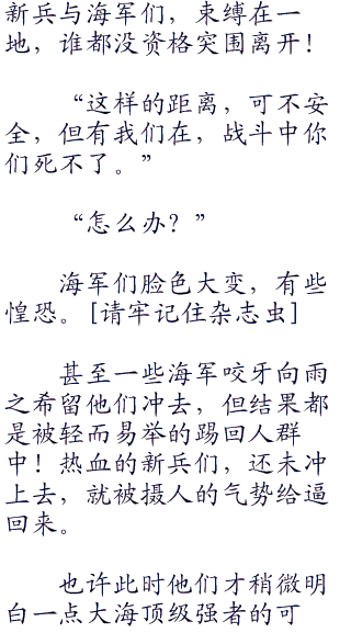 泽法怒吼着,让新兵让海军离开,而他本人无惧的看着千劫,他还没有天真到自己可以轻而易举带走所有人,他还没有狂妄到如此地步。
