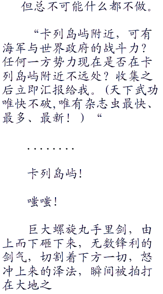海军本部大将,战国都知道,此时都在海军总部,没有人巧合在卡列岛屿附近。