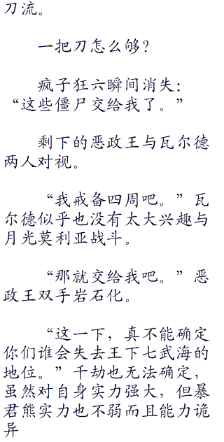 “桀桀,你们到我的地盘干什么?”月光莫利亚阴笑的看着千劫一行人:“海军总部此时可尽全力扑捉你们,还让我们王下七武海配合海军的行动,如果在这里扑捉掉你们,不知道海军需要给我们多少好处?”