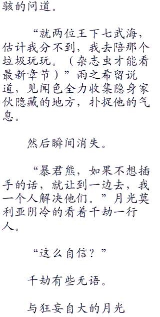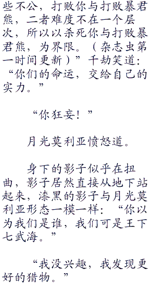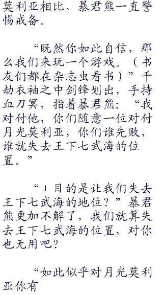 “桀桀,你们到我的地盘干什么?”月光莫利亚阴笑的看着千劫一行人:“海军总部此时可尽全力扑捉你们,还让我们王下七武海配合海军的行动,如果在这里扑捉掉你们,不知道海军需要给我们多少好处?”