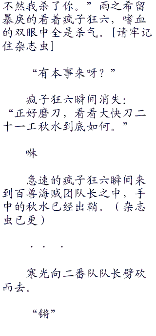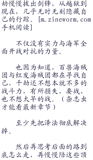 “说实话,现在我没心情跟你们百兽海贼团有任何战斗。”千劫持剑说道,剑依旧没有出鞘。
