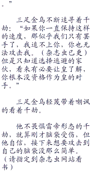 三足金乌再次向千劫飞来:“你绝不是我的对手。”