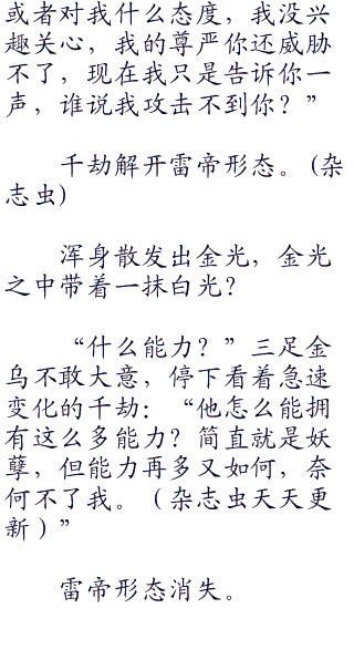 千劫长吐一口浊气,雷帝形态没有被克制,甚至急速中反而克制了三足金乌,只是雷帝形态具备的攻击方式,是雷电镭射,虽然穿透力十足。