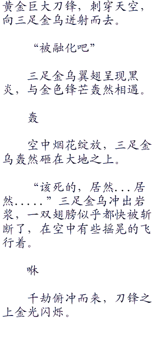 “你知道又如何?”三足金乌继续飞来:“难道你还能打败我吗?”