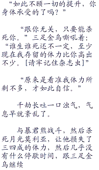 “怎么?你的温度无法瞬间完全融化了吗?”千劫睥睨的三足金乌:“被克制的滋味不好受吧?”