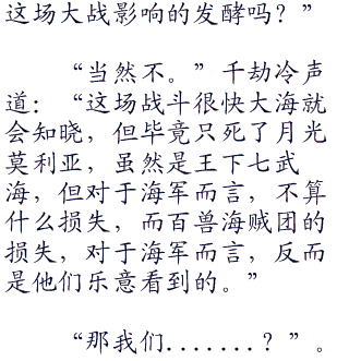 貔貅惊喜的看着不远处海面,同样浑身是血的一番队队长,此时无力的向海底落下去。