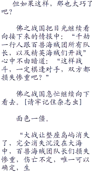 而知晓海军大将等强者的位置,cp9也无从得知千劫他们的目标是何处。