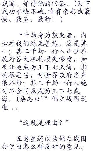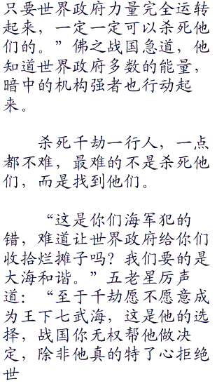 “是啊,只是千劫都这么强了,听说这段时间,世界政府各大机构损失挺严重的,战国元帅焦头烂额,可是最高战斗力大将们都无法