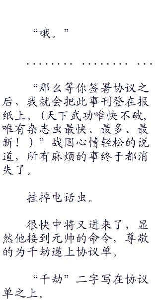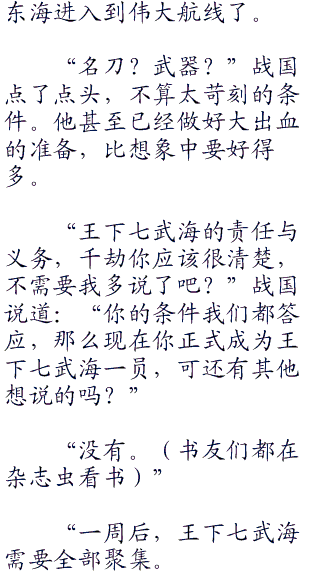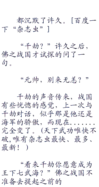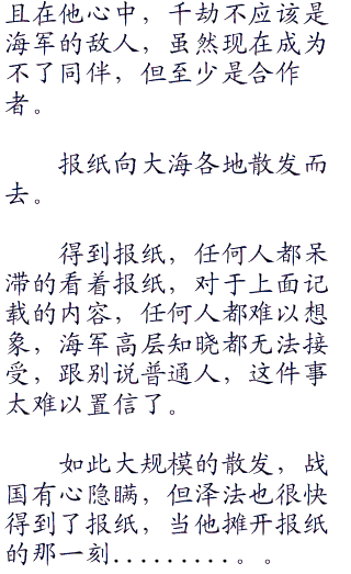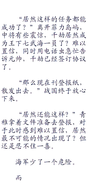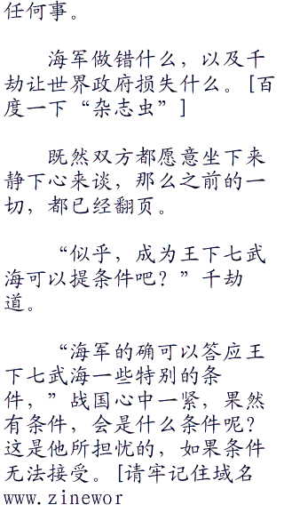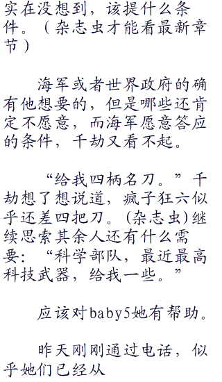 中将的任务,的确不是与千劫商谈,而是把电话虫交给千劫,用电话虫与海军总部的战国元帅商谈。
