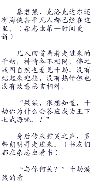 “请进”迈步,千劫进入到大殿之中,宽敞明亮的大殿中,已经有了人影。