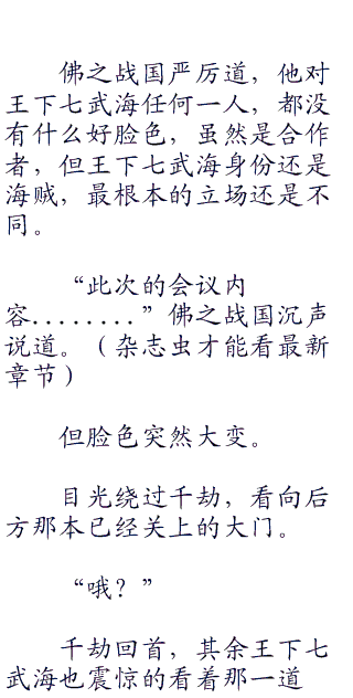 千劫身为王下七武海,参加此次会议,也不能自己乘坐船只达到圣地,而是要在此地,乘坐军舰,由军舰护送到圣地,而且只能他一人进入到圣地。
