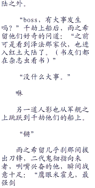 多弗朗明哥走到牢笼外,居高临下嘲讽的看着泽法:“老东西,去推进城真是便宜你了,估计你没本事越狱离开了吧?永远被关押,然后被遗忘,你的一切都失去了。”