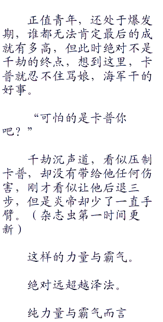 但这一击,是千劫承受卡普三次攻击最强的一次,但是否是全力爆发,千劫不敢保证。