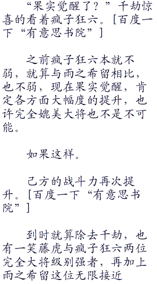 “现在我对你没兴趣。”疯子狂六不屑的看了一眼雨之希留:“现在你不是我的对手。”