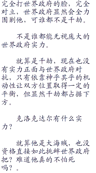 “那又如何?他虽然是王下七武海,与海军合作关系,但他本质还是海贼,与海军本质对立,如果他为了海军,非要选择违抗,那只能说他太愚蠢了。”