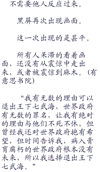 他没想过剩下的王下七武海居然还有人退出。