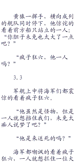 海军强者们从新落在每一艘军舰之上,上面本惊恐的海军看着这些肩披海军大衣的军官们,一时自信再起,士气如虹。