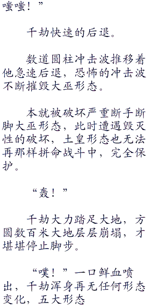 两掌重叠向前拍打而来,冲击波重叠在一起,瞬间笼罩在千劫浑身,后者不退不躲,甚至任由冲击波不断摧毁大巫形态。