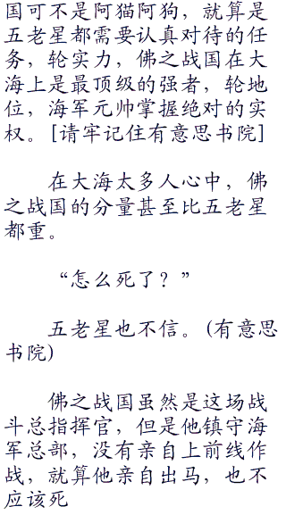 佛之战国的遗体也被海军收敛起来,放入基地中比较完好的大殿之中,有大量海军守护在这里,他们决不允许佛之战国的尸首再受到任何侮辱。