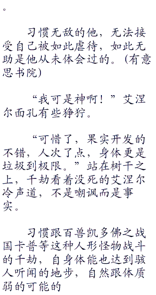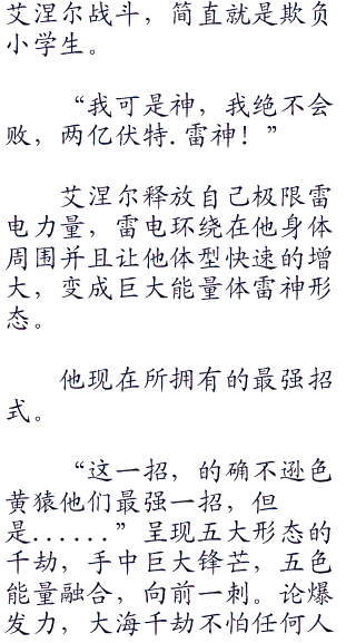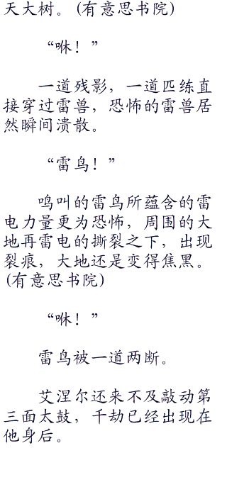 艾涅尔在地上翻滚,翻滚了百米以上,才破碎的森林中,急忙雷电化,在很远处凝聚成人,喷出鲜血同时惊恐中带着忌惮看着千劫,不敢再向前。