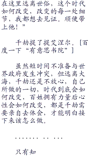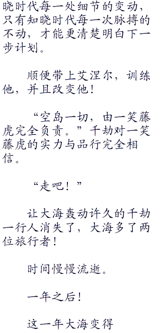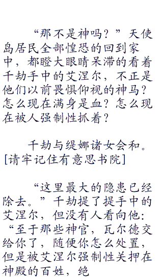 千劫瞬间来到这里,一般提起艾涅尔,下一刻出现在岛屿之上,把他扔在地上:“现在有闲心坐下来聊聊了吧?”、