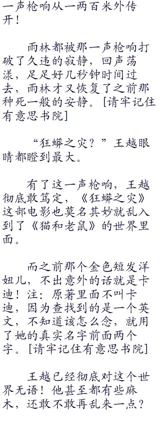 有了这一声枪响,王越彻底敢笃定,《狂蟒之灾》这部电影也莫名其妙就乱入到了《猫和老鼠》的世界里面。