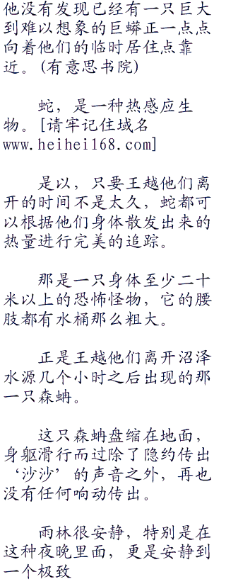 是以,只要王越他们离开的时间不是太久,蛇都可以根据他们身体散发出来的热量进行完美的追踪。