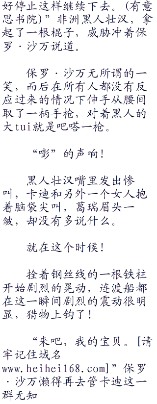 “你最好停止这样继续下去。”非洲黑人壮汉,拿起了一根棍子,威胁冲着保罗·沙万说道。