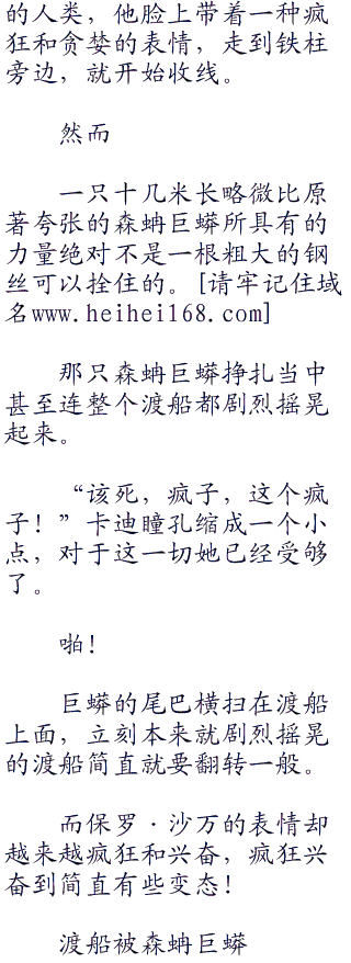 巨蟒的尾巴横扫在渡船上面,立刻……本来就剧烈摇晃的渡船简直就要翻转一般。