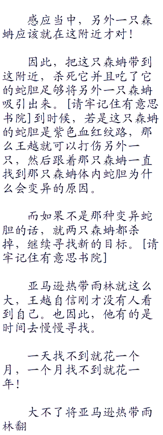 大不了将亚马逊热带雨林翻个底朝天,王越就不相信……他找不到某些森蚺巨蟒蛇胆变异的真正原因所在!