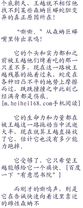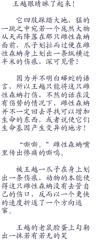 王越的老鼠脸蛋上勾勒出一抹若有若无的笑意,虽然这只森蚺不一定会给他想要的答案,但至少这代表着一丝希望么不是?