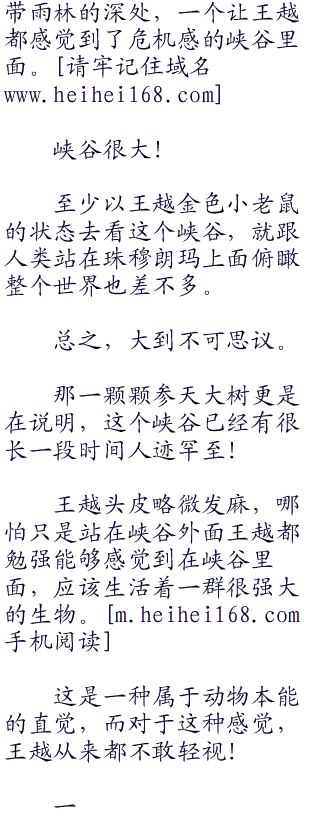 王越头皮略微发麻,哪怕只是站在峡谷外面……王越都勉强能够感觉到在峡谷里面,应该生活着一群很强大的生物。