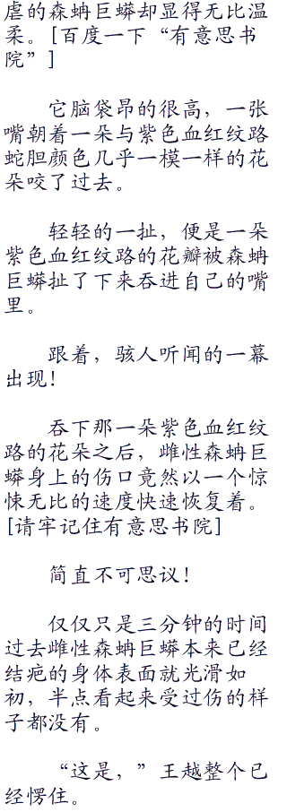 轻轻的一扯,便是一朵紫色血红纹路的花瓣被森蚺巨蟒扯了下来……吞进自己的嘴里。