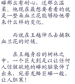 王越可没有森蚺巨蟒那么有耐心,还那么温柔。他现在最想要看看的就是……一整朵血兰花能够给他带来什么样的变化。