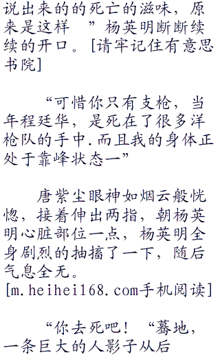 “你的拳劲. 已经到了李洛一海.杨露蝉 的境界程廷华部死在了枪下.而我的子弹…却不能伤到你…裁师傅来了也不会是你的对手 我是不会